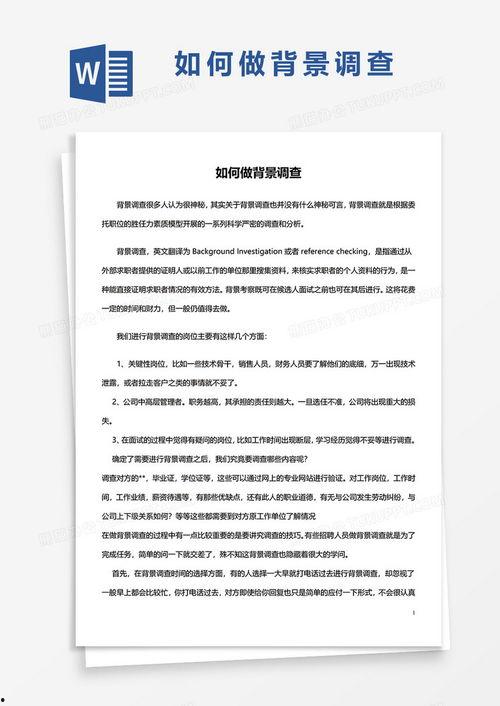 你知道吗?在现代社会,背景调查已经成为了职场中不可或缺的一环。这不,最近有个朋友就遇到了罗氏背景调查,结果让他大吃一惊。今天,就让我带你一起揭开罗氏背景调查的神秘面纱,看看它都包含了哪些内容吧!